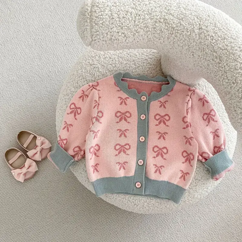 Pink Bow Knit Cardigan